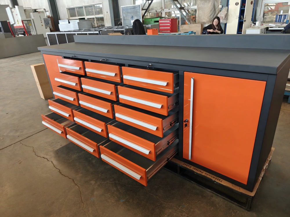 လိမ်မော်ရောင် workbench ကိုအရည်အသွေးမြင့်သောအအေးခံထားသောသံမဏိပြားများဖြင့်ပြုလုပ်ထားသောအရည်အသွေးမြင့်လှိမ့်ထားသောသံမဏိပြားများဖြင့်ပြုလုပ်ထားသည်။ မျက်နှာပြင်ကိုကားနှင့်တာရှည်ခံနှစ် ဦး စလုံးသည်အလိုအလျောက်ဖြန့်ဖြူးခြင်းလုပ်ငန်းစဉ်ဖြင့်ကုသသည်။ Orange Workbench ၏အံဆွဲတွင်အလျားလိုက်နှင့်ဒေါင်လိုက်အခန်းကန့်များသည်အာကာသခွဲဝေမှုနှင့်အညီအာကာသခွဲဝေမှုကိုအထောက်အကူပြုရန်အတွက်လွတ်လပ်စွာချိန်ညှိနိုင်သည်။ RECTES အမျိုးအစားများသေတ္တာများကိုလည်းသန့်စင်ပြီးခွဲခြားခြင်းနှင့်သိုလှောင်မှုရရှိရန်ရွေးချယ်နိုင်သည်။ လိမ်မော်ရောင် workbench ၏အံဆွဲရထားလမ်းများကိုအရည်အသွေးမြင့်သောဝက်ဝံဖြင့်ဒီဇိုင်းပြုလုပ်ထားသည်။ တစ်ခုတည်းသောလမ်းကြောင်းအံဆွဲတွင် 80 ကီလိုဂရမ်နှင့်အဖွင့်ပမာဏ 85% ရှိသည်။ နှစ်ထပ် tracker သည် 140 ကီလိုဂရမ်၏ 0 န်ဆောင်မှုစွမ်းဆောင်ရည်ရှိပြီးအဖွင့်နှုန်းမှာ 100% နှင့်အဖွင့်နှုန်းသည်ပြောင်းလွယ်ပြင်လွယ်။ ချောမွေ့သည်။
